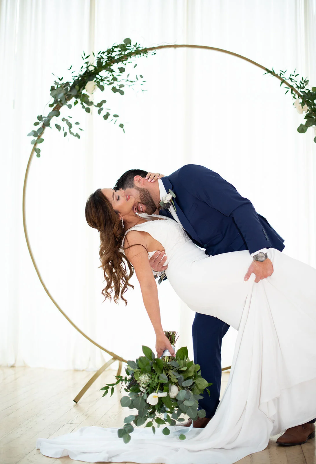 Wedding arch!!! In golden metal and full circle? Yes please, I love this modern twist in romance! Have your florist fill it in a minimal delicate and airy way, OR go all in with a tropical or rose garden kind of way. I’m giddy for all of those options!