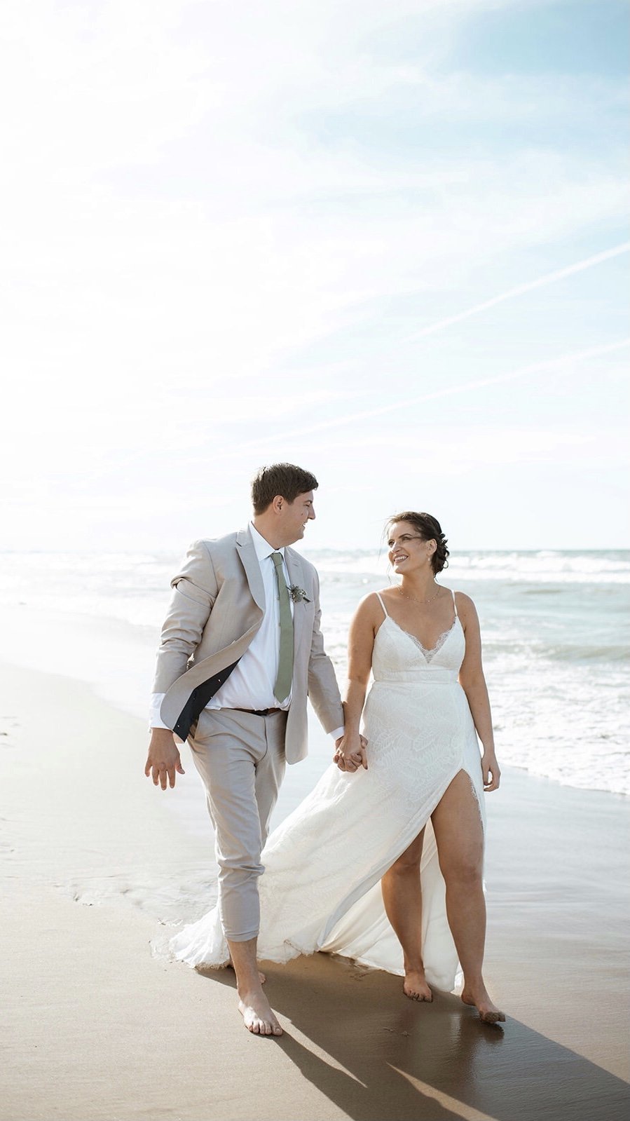 This is Jess and Matt, who planned a gorgeous beach wedding in Mexico, but their wedding planning got a swift turn when the pandemic made it impossible. Wedding had to be home, it had to be very small, but this couple were one of those who didn’t want to put life on hold.